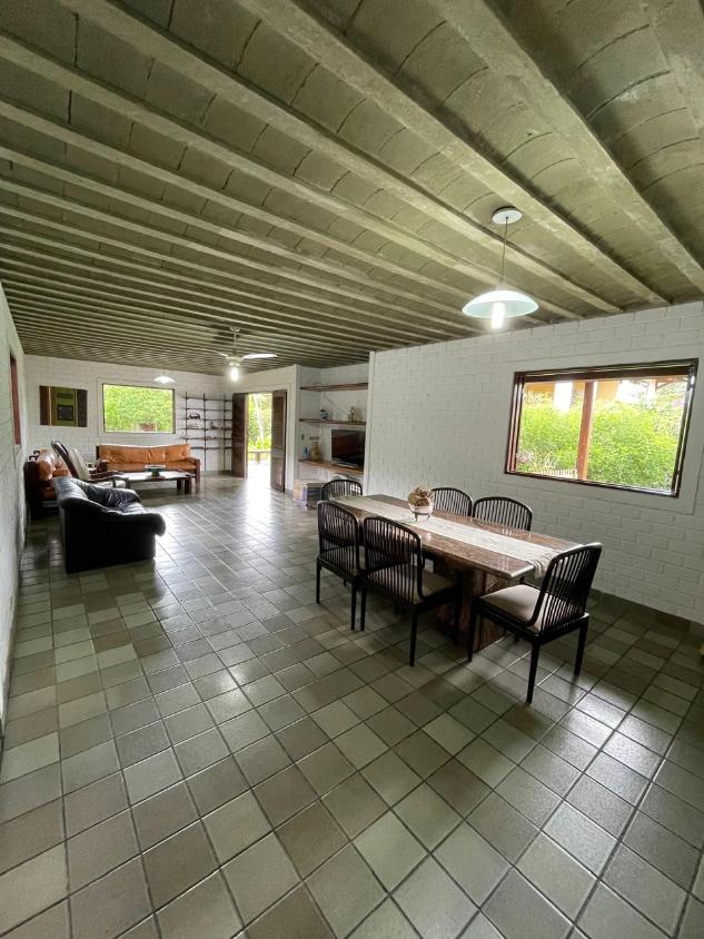 Casa em condomínio fechado com completa estrutura de lazer e área de mata atlântica preservada integrada! O imóvel dispõe de 4 quartos, sendo 2 suítes, sala ampla, cozinha, área de serviço com dependência completa e área verde privativa com árvores frutíferas, 2 canis e 2 depósitos.